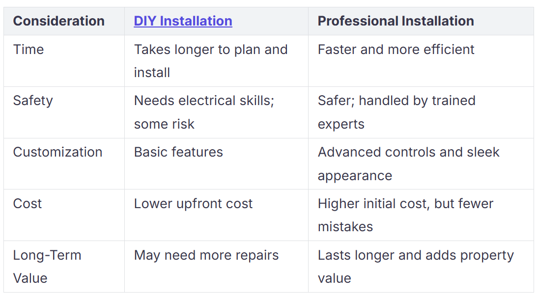 Zatrudnienie profesjonalisty kosztuje więcej, ale zapewnia fachową pomoc. Profesjonaliści używają dobrych materiałów i dbają o bezpieczeństwo swoich lamp. Mogą wykonywać trudne zadania i dodawać specjalne funkcje.