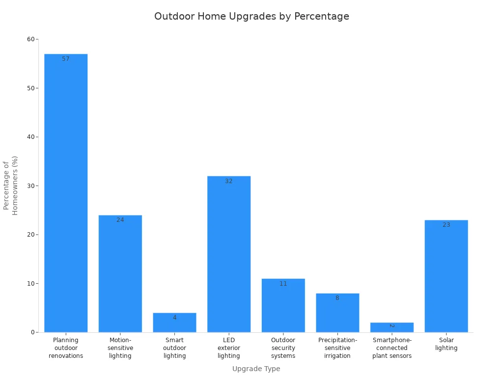 Inteligentna technologia ułatwia korzystanie z zewnętrznych świateł LED. Możesz sterować oświetleniem za pomocą telefonu lub głosu. Wiele systemów umożliwia ustawienie czasu włączania i wyłączania świateł. Pomaga to oszczędzać energię i zapewnia bezpieczeństwo w domu. Możesz także zmienić jasność i kolor świateł.